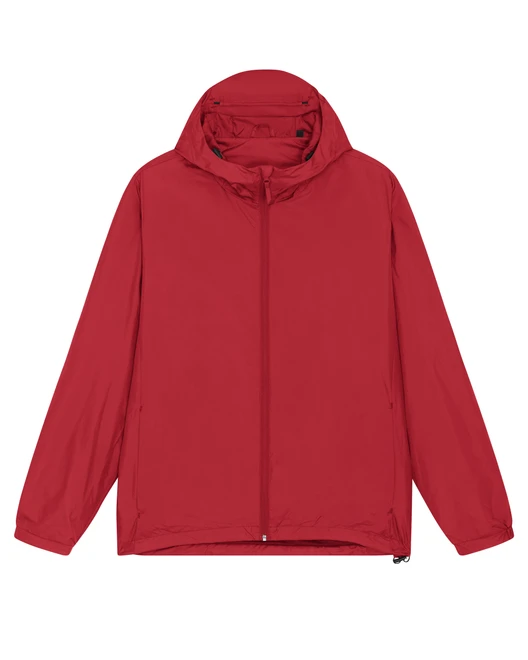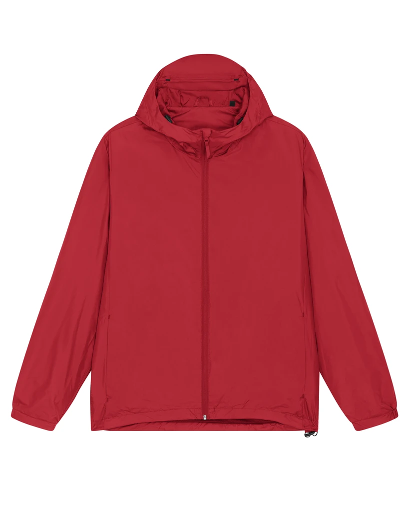 Material: 100% Recycled polyester, Fluorine-free DWR; Weight: 75gsm; Medium Fit, set-in sleeve, longer back length with curved hem for protection. bottom hem with adjustable plastic stopper and elastic cord, sealed hood visor and sealed welt pockets, double layered hood with adjustable plastic stopper and elastic cord on inside, reverse nylon zip at center front with chin guard, zipped welt pockets with extra grosgrain puller, side panels for better shape, semi-elastic sleeve cuff, self fabric half moon at back neck, inside zip opening at bottom hem and wearer's left chest for easy decoration; Certificates: Global Recycled Standard (GRS), Fair Wair, STANDARD 100 by OEKO-TEX®, Peta - Approved VEGAN