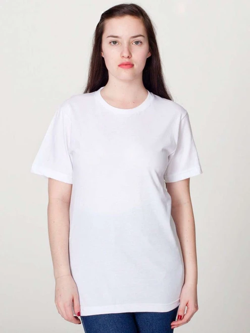Yarn Count 30/1,100% cotton thread on color white, Shoulder-to-shoulder tape and 2.22 cm seamed collar, 2.54cm double-needle sleeve and bottom hem, Side seam, double-satin razor label