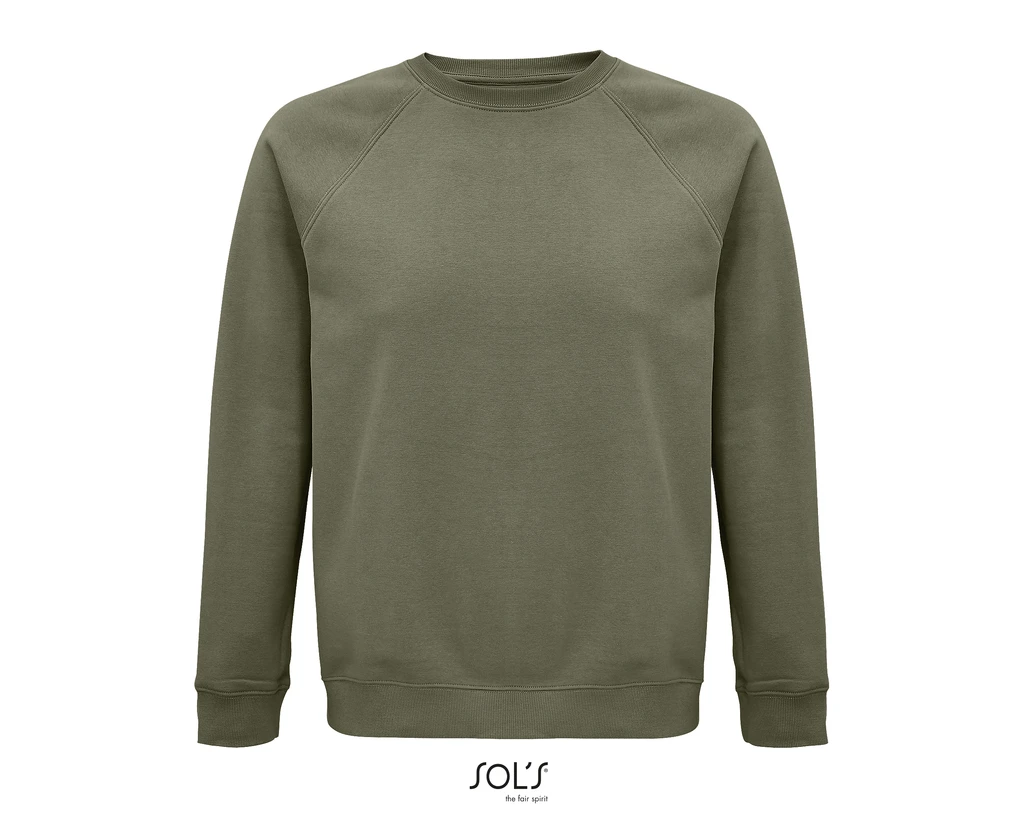brushed lining, outside: 100% organic cotton; Cut and sewn. Raglan sleeves, 2x2 ribbed cuffs, collar and hem, half moon inside collar, neck tape; Certificates: STANDARD 100 by OEKO-TEX®; Organic Blended Content Standard