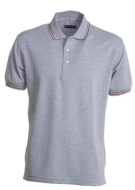 Unisex short-sleeved polo shirt with 3 white buttons, contrasting collar and sleeve trim (colours of the flag), rib collar and sleeve edging, side vents with reinforced seams, concealed collar stitching, side reinforcement tape, stretch seams, inner neck tape