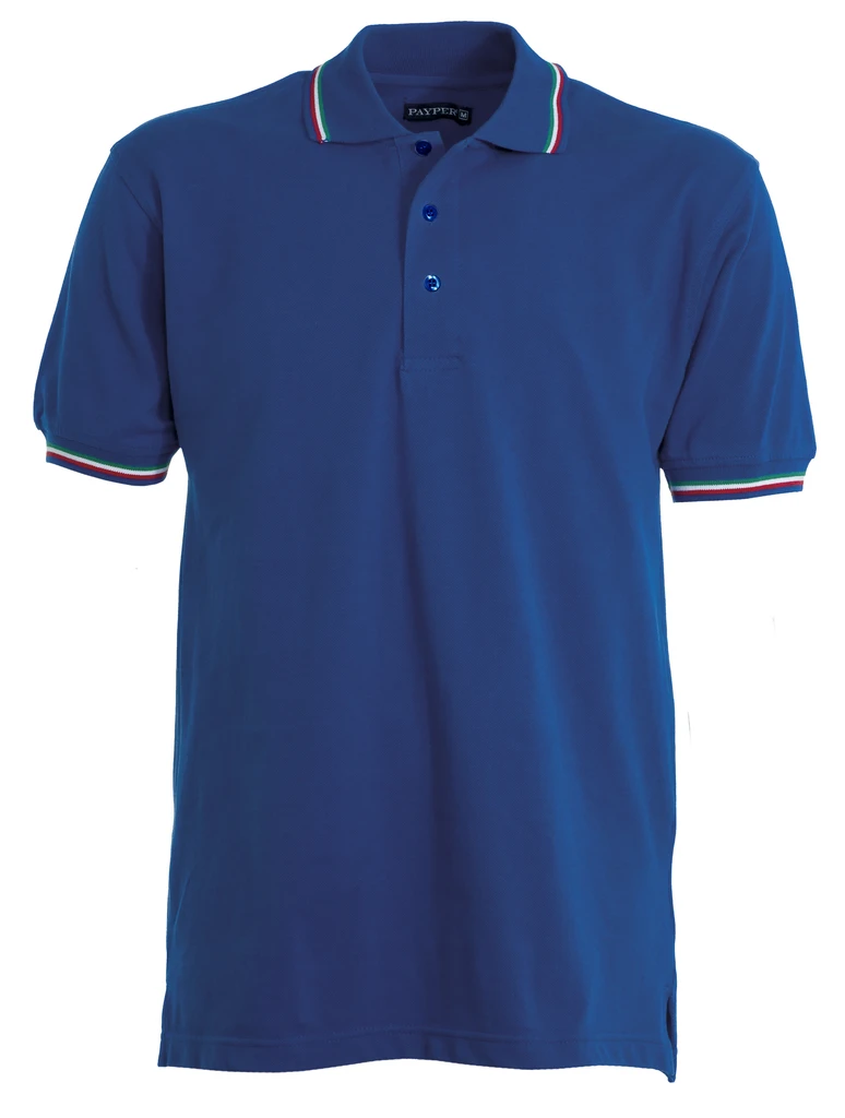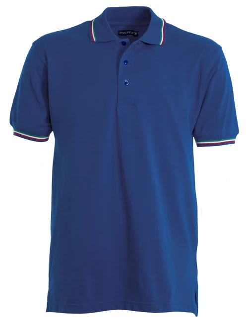 Unisex short-sleeved polo shirt with 3 white buttons, contrasting collar and sleeve trim (colours of the flag), rib collar and sleeve edging, side vents with reinforced seams, concealed collar stitching, side reinforcement tape, stretch seams, inner neck tape