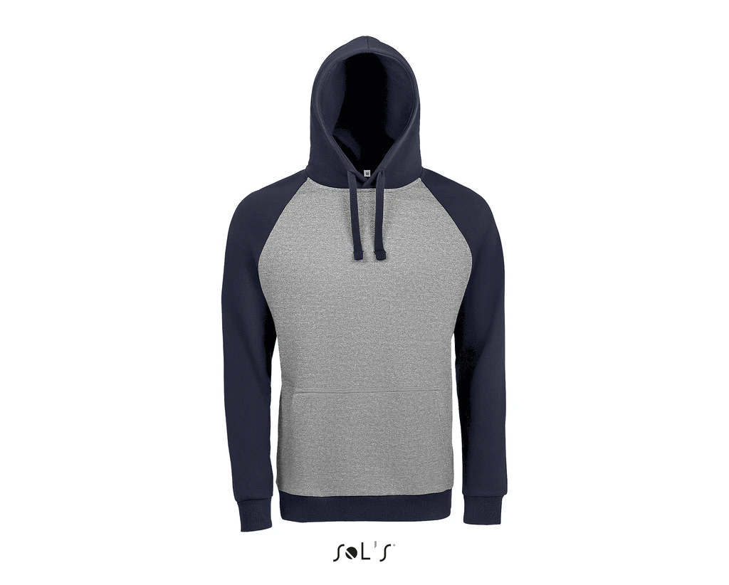 QUALITY: MOLTON 280 TECHNOLOGIE LSF (Low Shrinkage Fabric), 80% ringspun cotton, 20% polyester, brushed inside, Outside: 100% cotton; Two-coloured, Raglan sleeves, Front pouch pocket, Ribbed cuffs and bottom, Lined hood with drawstring to adjust it, taped neck; Certificate: STANDARD 100 by OEKO-TEX®