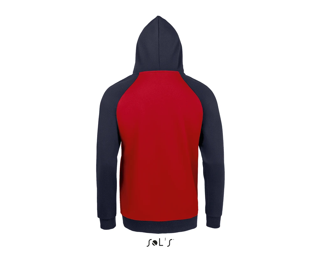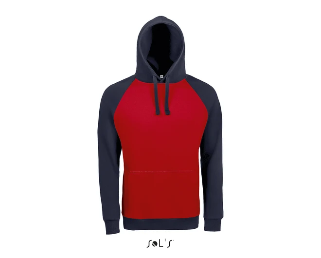 QUALITY: MOLTON 280 TECHNOLOGIE LSF (Low Shrinkage Fabric), 80% ringspun cotton, 20% polyester, brushed inside, Outside: 100% cotton; Two-coloured, Raglan sleeves, Front pouch pocket, Ribbed cuffs and bottom, Lined hood with drawstring to adjust it, taped neck; Certificate: STANDARD 100 by OEKO-TEX®
