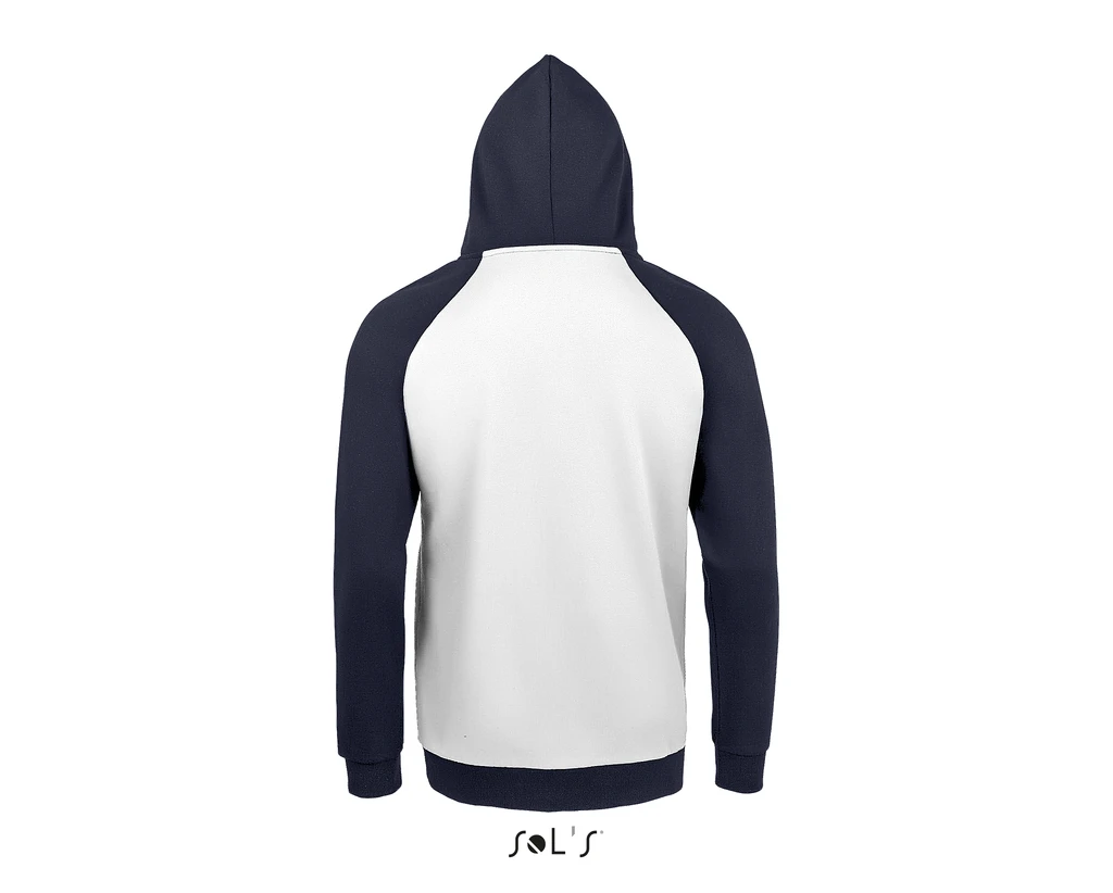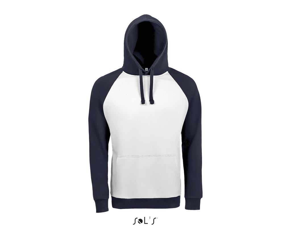 QUALITY: MOLTON 280 TECHNOLOGIE LSF (Low Shrinkage Fabric), 80% ringspun cotton, 20% polyester, brushed inside, Outside: 100% cotton; Two-coloured, Raglan sleeves, Front pouch pocket, Ribbed cuffs and bottom, Lined hood with drawstring to adjust it, taped neck; Certificate: STANDARD 100 by OEKO-TEX®