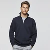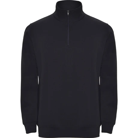 Sweatshirt with half zip in neck in same tone. Inner collar in same tone. Reinforced covered seams in collar. 1x1 ribbed cuffs and waist.