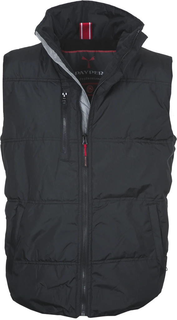 Unisex vest, 8 mm plastic zip with metal pull, two side pockets with zip, breast pocket. Padded, contrasting micro-fleece lining