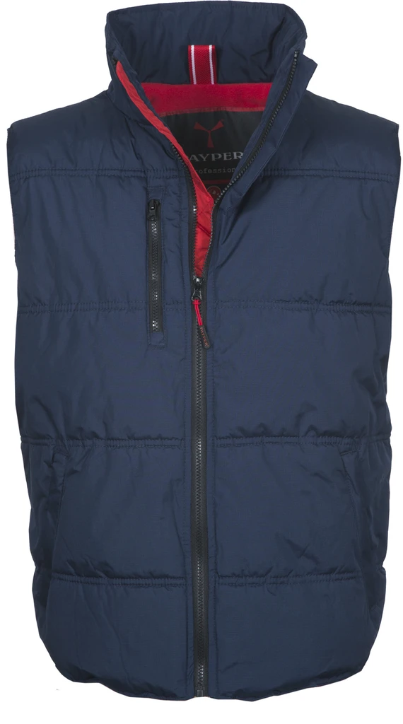 Unisex vest, 8 mm plastic zip with metal pull, two side pockets with zip, breast pocket. Padded, contrasting micro-fleece lining