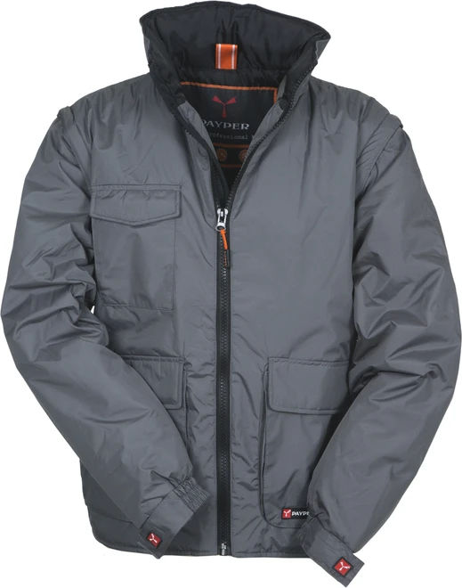 Men’s lightweight jacket with detachable sleeves, 8 mm plastic zip with metal pull, foldaway hood, adjustable cuffs, two roomy LOCK SYSTEM front pockets, two side pockets, smartphone phone breast pocket. Padded, zip for easier printing and embroidery