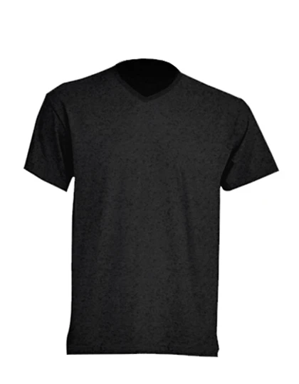 V-neck T-shirt. Shoulder to shoulder tape. Lycra V-neck. Grey Melange: 85% cotton / 15% viscose. Heather: 65% polyester / 35% cotton. Denim heather: 60% cotton / 40% polyester