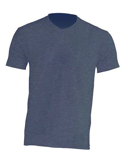V-neck T-shirt. Shoulder to shoulder tape. Lycra V-neck. Grey Melange: 85% cotton / 15% viscose. Heather: 65% polyester / 35% cotton. Denim heather: 60% cotton / 40% polyester