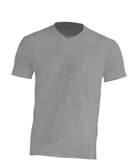 V-neck T-shirt. Shoulder to shoulder tape. Lycra V-neck. Grey Melange: 85% cotton / 15% viscose. Heather: 65% polyester / 35% cotton. Denim heather: 60% cotton / 40% polyester