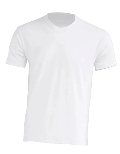 V-neck T-shirt. Shoulder to shoulder tape. Lycra V-neck. Grey Melange: 85% cotton / 15% viscose. Heather: 65% polyester / 35% cotton. Denim heather: 60% cotton / 40% polyester