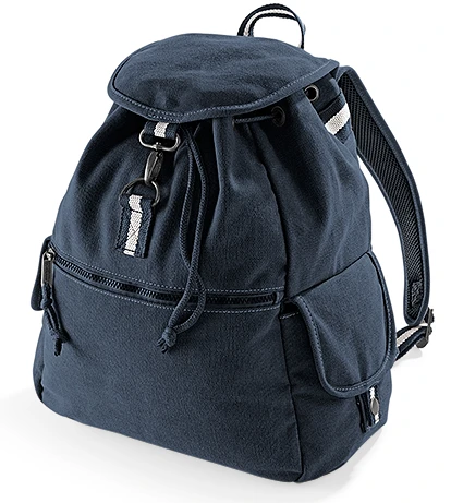 Zippered front pocket, zippered internal pocket, side pockets, padded base, draw cord closure, padded adjustable shoulder straps, grab handle; Dimensions: 30 x 36 x 16 cm; Capacity: 18 litres