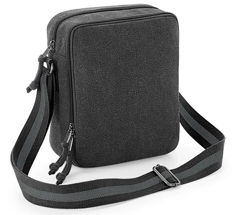 TearAway label for ease of rebranding, front pocket designed for easy decoration, zippered main compartment, two-tone webbing strap, adjustable shoulder strap; Dimensions: 18.5 x 22.5 x 8 cm; Capacity: 3.5 litres