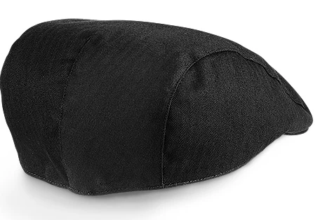 Unisex styling, herringbone weave fabric, stitched-down peak, elasticated crown, available in two sizes - S/M and L/XL