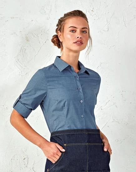 Women's Cross-dye Roll Sleeve Poplin Bar Shirt PR317