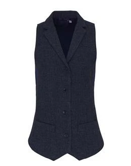 An attractive, versatile waistcoat with for women's. Styled with a lapel collar that leads into the main body of the waistcoat with four button fastening. The Herringbone pattern has been achieved by two coloured yarns being woven together. This waistcoat is fully lined on the underside and to the reverse where there is a buckle for the wearer to adjust accordingly.