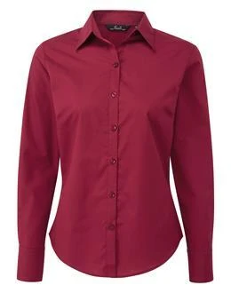 A stylish long sleeve women's blouse that comes in 27 colours. This blouse offers the wearer a semi-fitted feminine styling with a soft collar, bust, back darts and a rounded bottom hem.