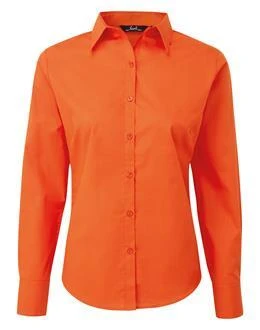 A stylish long sleeve women's blouse that comes in 27 colours. This blouse offers the wearer a semi-fitted feminine styling with a soft collar, bust, back darts and a rounded bottom hem.