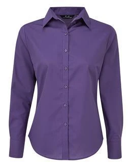 A stylish long sleeve women's blouse that comes in 27 colours. This blouse offers the wearer a semi-fitted feminine styling with a soft collar, bust, back darts and a rounded bottom hem.