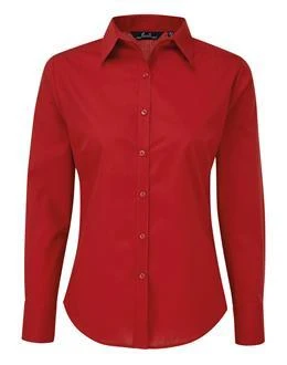 A stylish long sleeve women's blouse that comes in 27 colours. This blouse offers the wearer a semi-fitted feminine styling with a soft collar, bust, back darts and a rounded bottom hem.