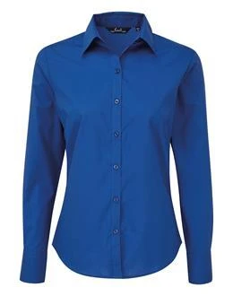A stylish long sleeve women's blouse that comes in 27 colours. This blouse offers the wearer a semi-fitted feminine styling with a soft collar, bust, back darts and a rounded bottom hem.