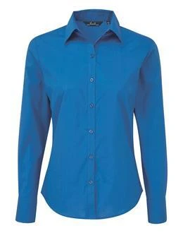A stylish long sleeve women's blouse that comes in 27 colours. This blouse offers the wearer a semi-fitted feminine styling with a soft collar, bust, back darts and a rounded bottom hem.