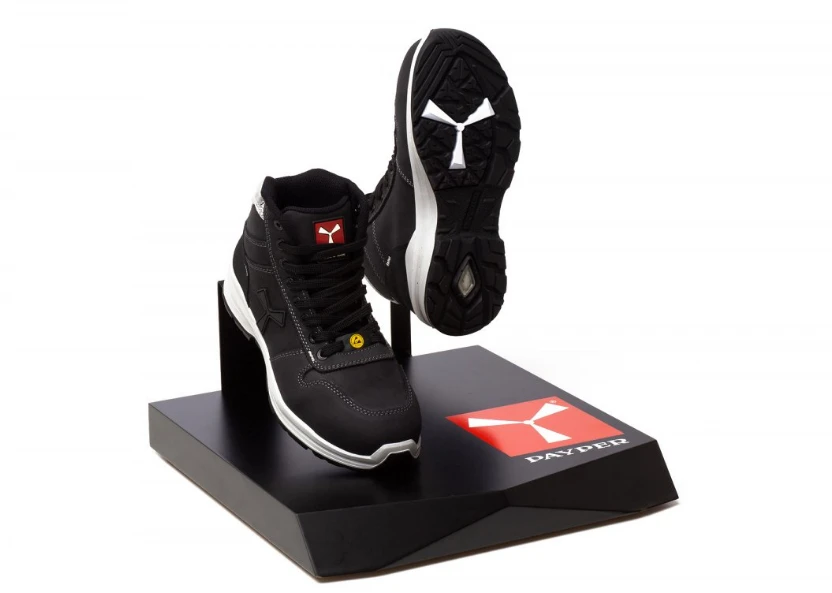 Women's medium safety shoe, upper in water-repellent and breathable leather, inner lining (throughout the internal surface), breathable and resistant to abrasion, 8 + 8 metal-free eyelets, pampas grain heel guard with reflective insert, die-cast aluminium tip, Ortholite X40 016 ESD removable arch support, certified anti-puncture reinforced fabric insole, anti-torsion shank, horseshoe-shaped under-toe, ultra-light ESD polyurethane mid-sole, high tenacity and balanced density ESD polyether MASTER BALANCE cushioning, XTRAIL GRIP outsole in ESD TPU with heel and tip guard