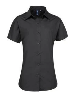 A women's short sleeve Supreme Poplin Shirt which comes in a heavy weight material for improved appearance. Soft collar detail, bust and back darts give this blouse a semifitted appearance.