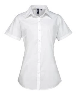 A women's short sleeve Supreme Poplin Shirt which comes in a heavy weight material for improved appearance. Soft collar detail, bust and back darts give this blouse a semifitted appearance.