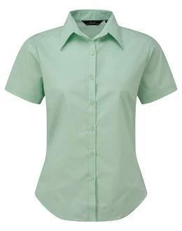 A women's short sleeve blouse with semi-fitted styling, available in 27 colours. The blouse features soft collar styling with bust and back darts and a rounded bottom hem for a really attractive piece of workwear.