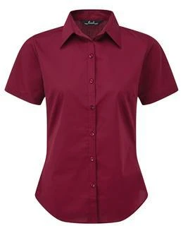 A women's short sleeve blouse with semi-fitted styling, available in 27 colours. The blouse features soft collar styling with bust and back darts and a rounded bottom hem for a really attractive piece of workwear.