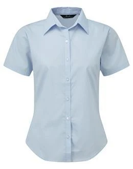 A women's short sleeve blouse with semi-fitted styling, available in 27 colours. The blouse features soft collar styling with bust and back darts and a rounded bottom hem for a really attractive piece of workwear.