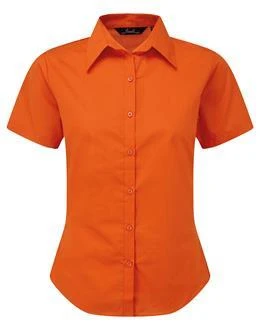 A women's short sleeve blouse with semi-fitted styling, available in 27 colours. The blouse features soft collar styling with bust and back darts and a rounded bottom hem for a really attractive piece of workwear.