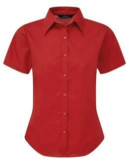 A women's short sleeve blouse with semi-fitted styling, available in 27 colours. The blouse features soft collar styling with bust and back darts and a rounded bottom hem for a really attractive piece of workwear.