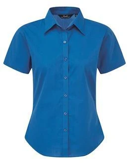 A women's short sleeve blouse with semi-fitted styling, available in 27 colours. The blouse features soft collar styling with bust and back darts and a rounded bottom hem for a really attractive piece of workwear.