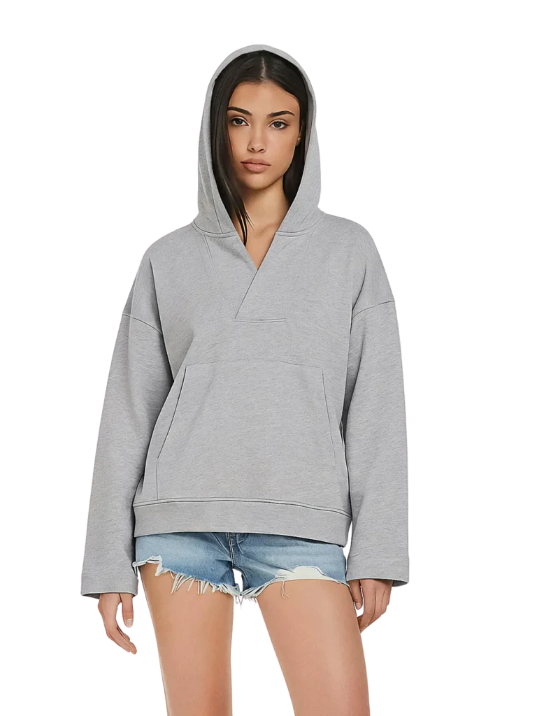 EP400-LHEThe EP400 introduces a feminine interpretation of casual comfort. This women’s V-neck hoodie features a flattering neckline and relaxed silhouette, crafted from substantial 300 gsm organic cotton fleece with a soft brushed finish.