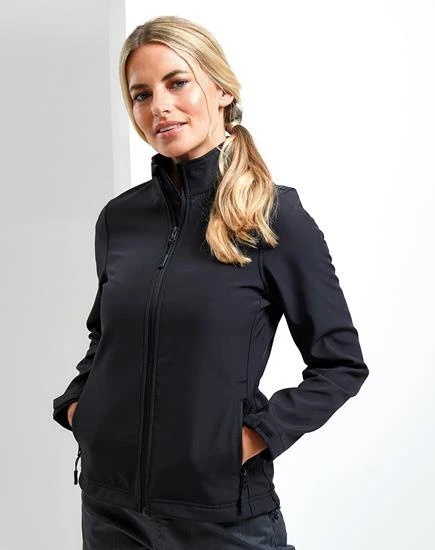 A women's two layer softshell jacket carrying Premier's Windchecker® trademark for wind and water resistance through the fabric. Made with 100% recycled polyester, this two layer zip-through softshell bodywarmer features hook 'n' loop strips to the cuffs for adjustment around the wrist. There's two handy zipped side pockets and an elasticated drawcord hem for fit. A great versatile outer layer for casual and corporate dressing, featuring a curved hem and stitched side panels for a more feminine fit.