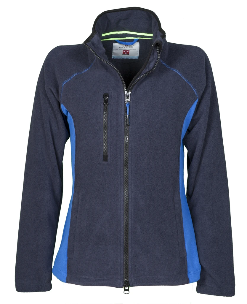 Women’s two-tone fitted fleece, with black plastic 8 mm zip, raglan sleeves, adjustable drawstring at the waist, elasticated cuffs, two pockets with concealed zip, one front zip pocket, neck with contrasting reinforcement tape, reinforced seams