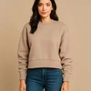 N9087-B009Fashionable cropped sweatshirt for women made from a heavy blend of combed cotton and recycled polyester, finished with a printable half moon, wide ribbed cuffs, collar and waistband.