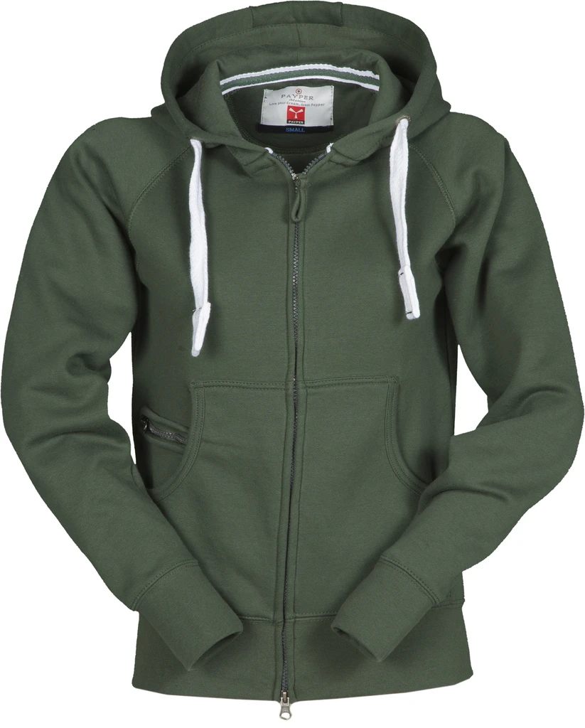 Women’s fitted hoodie with full, plastic-covered SBS zip with double metal pull, hood with double stitched seams and white drawstring with contrasting stitching and metal rings, raglan sleeves, kangaroo pockets, small zip pocket, stretch rib cuffs and hem, reinforced seams