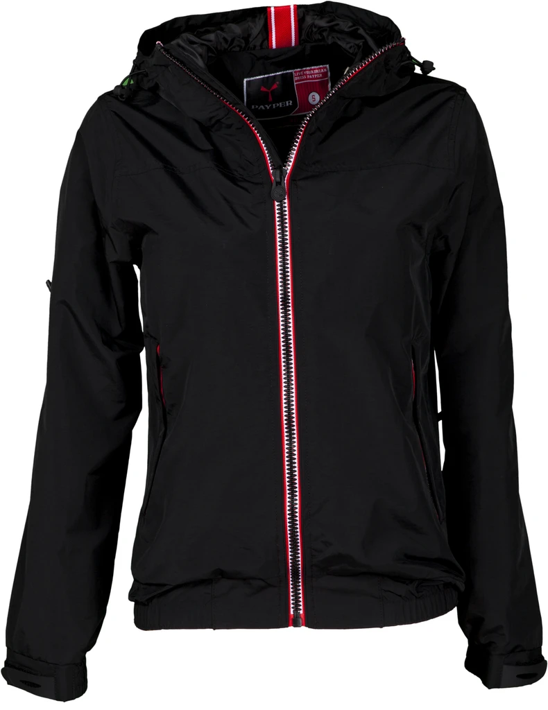 Women’s comfort-fit lightweight jacket with 8 mm contrasting zip, shaped hood with two seams and drawstring, elasticated waist, elasticated and adjustable cuffs, two outer pockets with concealed zip. Unpadded, mesh lining, one inner zip pocket with opening for smartphone headphones, zip on the back and chest for easier printing and embroidery