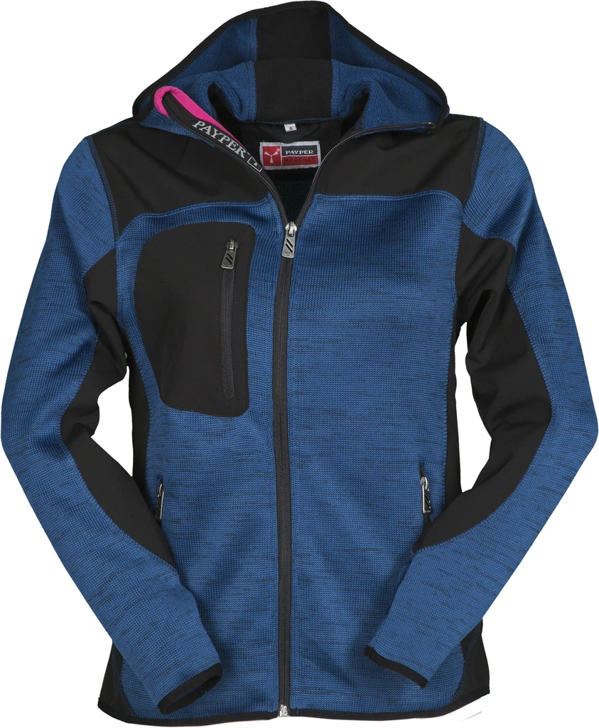 Women’s comfort-fit jacket, long taped SBS zip, shaped hood with double stitched seams, thin-edge cuffs and hem, two side pockets with zip, one breast pocket; knit detail with inserts in black softshell
