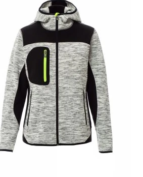 Women’s comfort-fit jacket, long taped SBS zip, shaped hood with double stitched seams, thin-edge cuffs and hem, two side pockets with zip, one breast pocket; knit detail with inserts in black softshell
