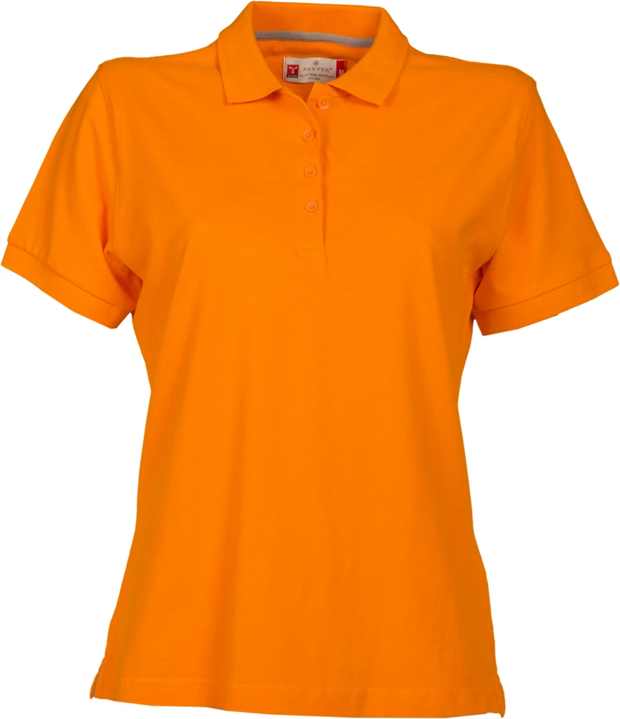 Women’s short-sleeved fitted polo shirt with 4, matching, mother-of-pearl effect buttons, rib collar and sleeve edging, side vents, concealed collar stitching with contrasting tape, stretch seams, side reinforcement tape, inner neck tape