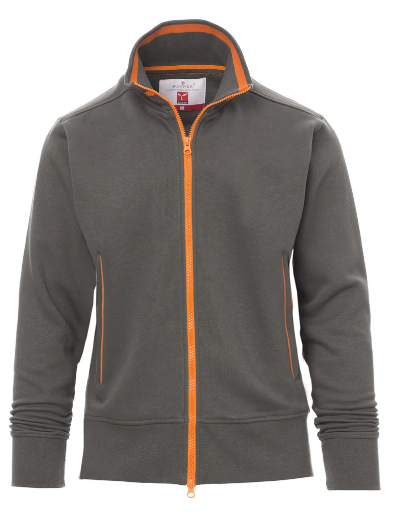 Women’s fitted sweatshirt with full, contrasting coloured plastic SBS zip with double metal pull; rib collar with contrasting trim, side pockets with