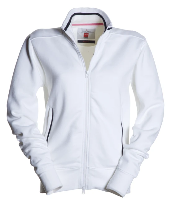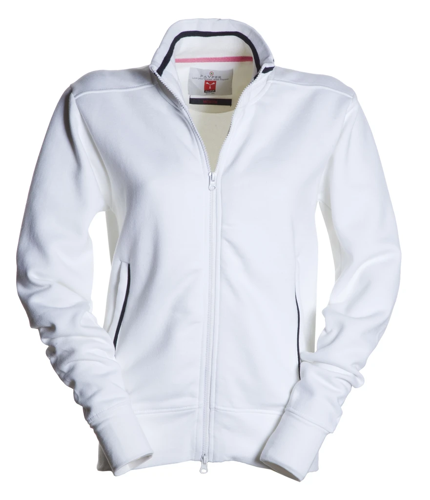 Women’s fitted sweatshirt with full, contrasting coloured plastic SBS zip with double metal pull; rib collar with contrasting trim, side pockets with
