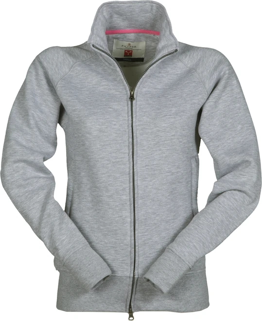 Women’s sweatshirt, with full, plastic-covered zip with double metal pull, raglan sleeves, two pockets with concealed zips, stretch rib cuffs and hem, reinforced seams