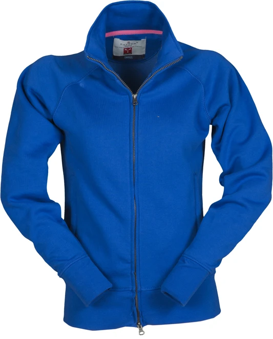 Women’s sweatshirt, with full, plastic-covered zip with double metal pull, raglan sleeves, two pockets with concealed zips, stretch rib cuffs and hem, reinforced seams