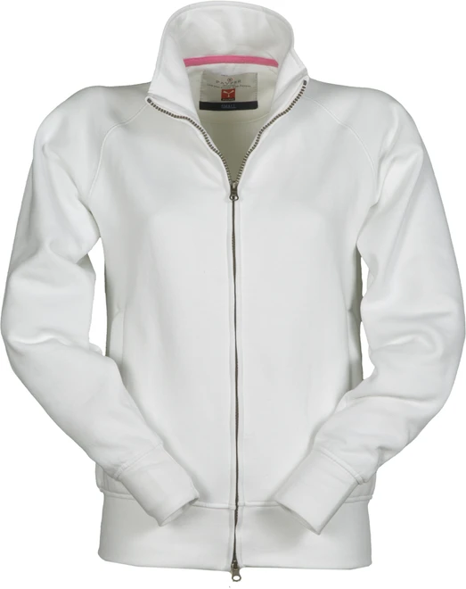 Women’s sweatshirt, with full, plastic-covered zip with double metal pull, raglan sleeves, two pockets with concealed zips, stretch rib cuffs and hem, reinforced seams